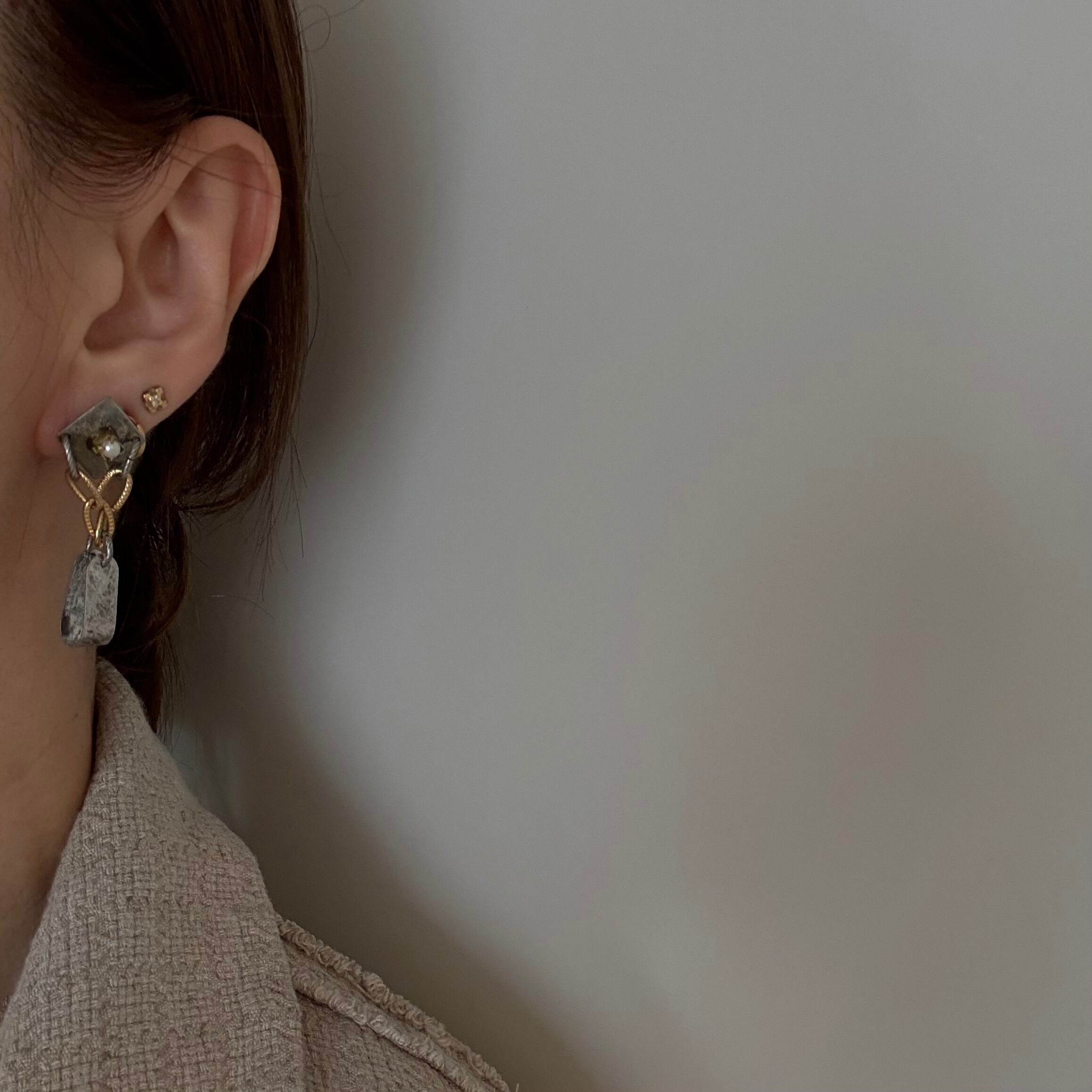 輸入パーツをふんだんに使用したこのピアスは、