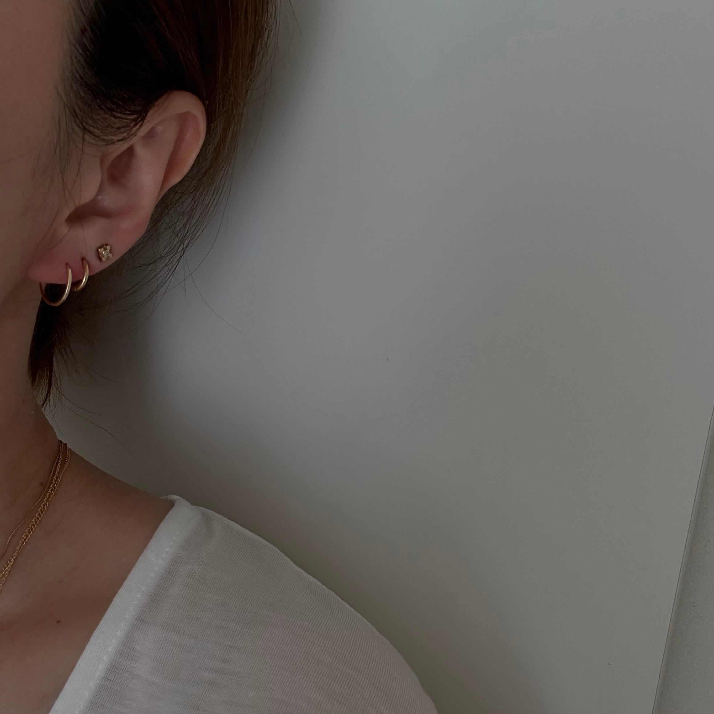 日々の装いにそっと寄り添う、ミニマルなゴールドフープピアス。