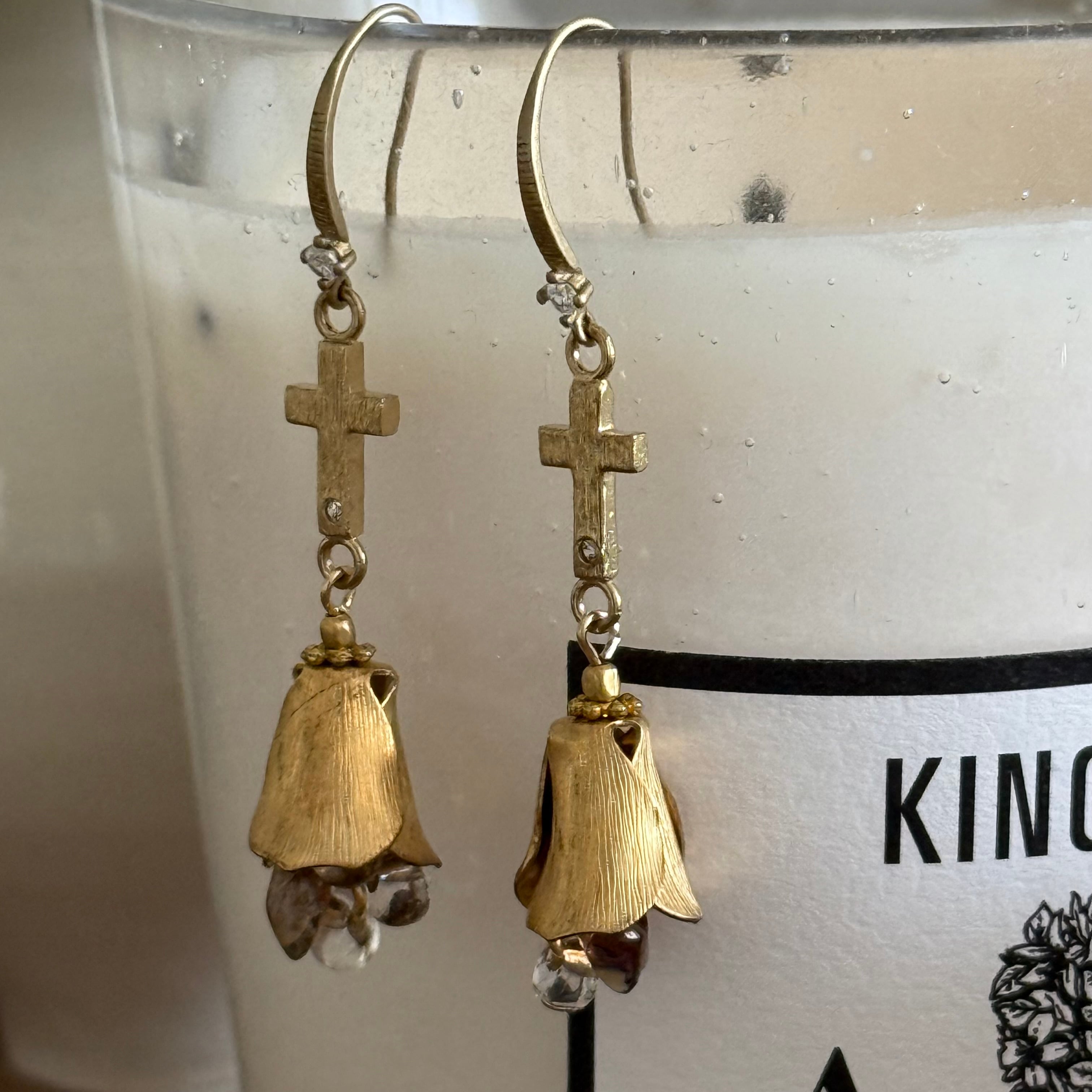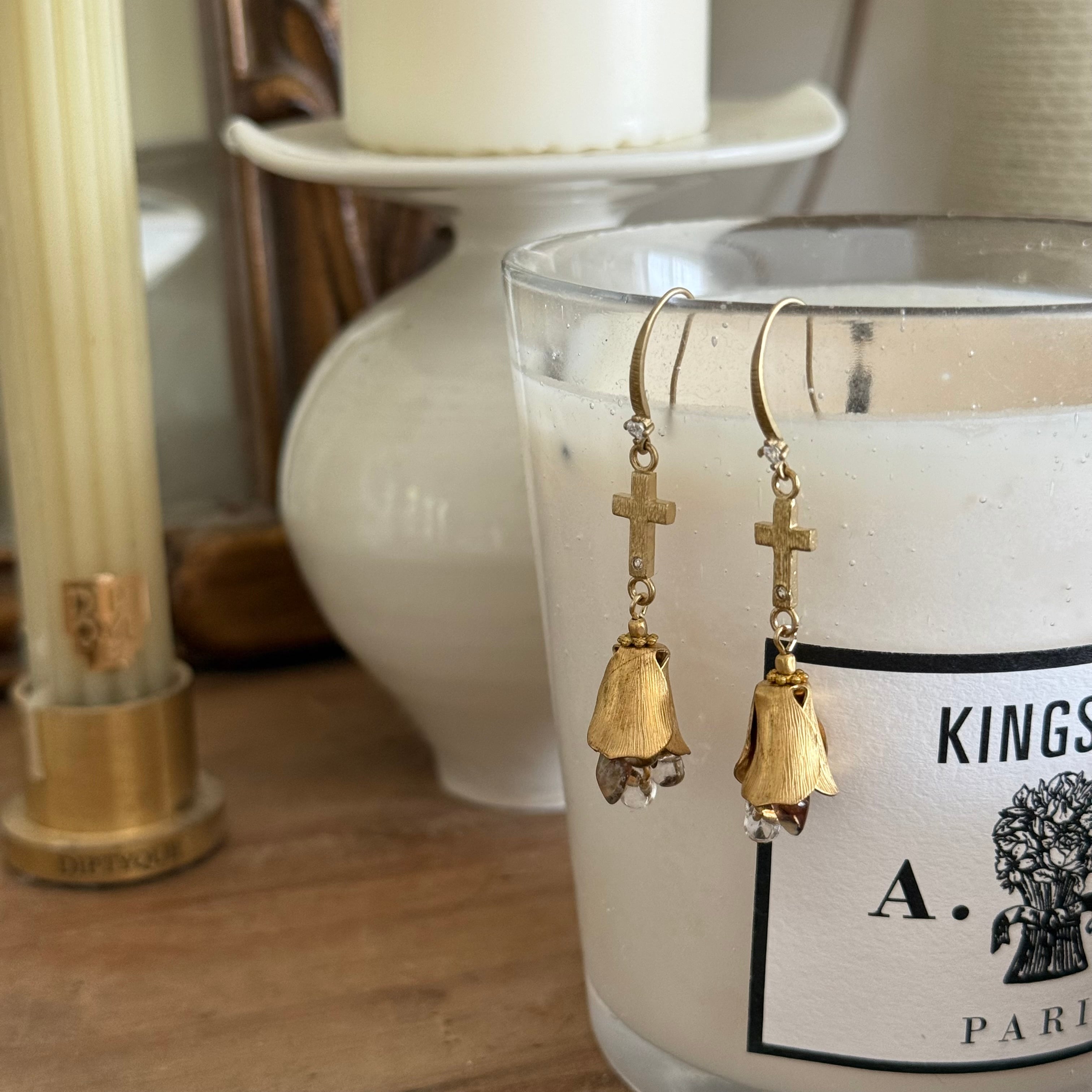 教会のベルをイメージしたクロスとビーズを使用した美しいピアスです。