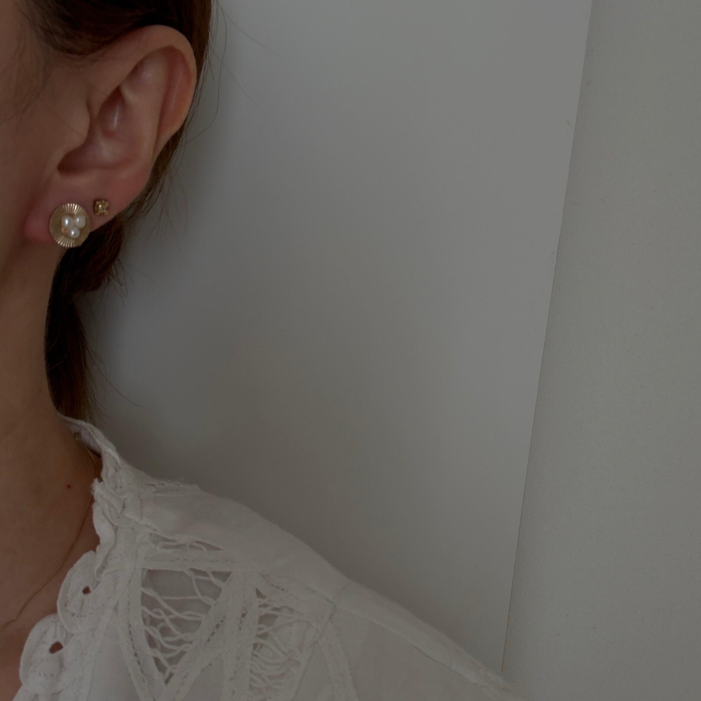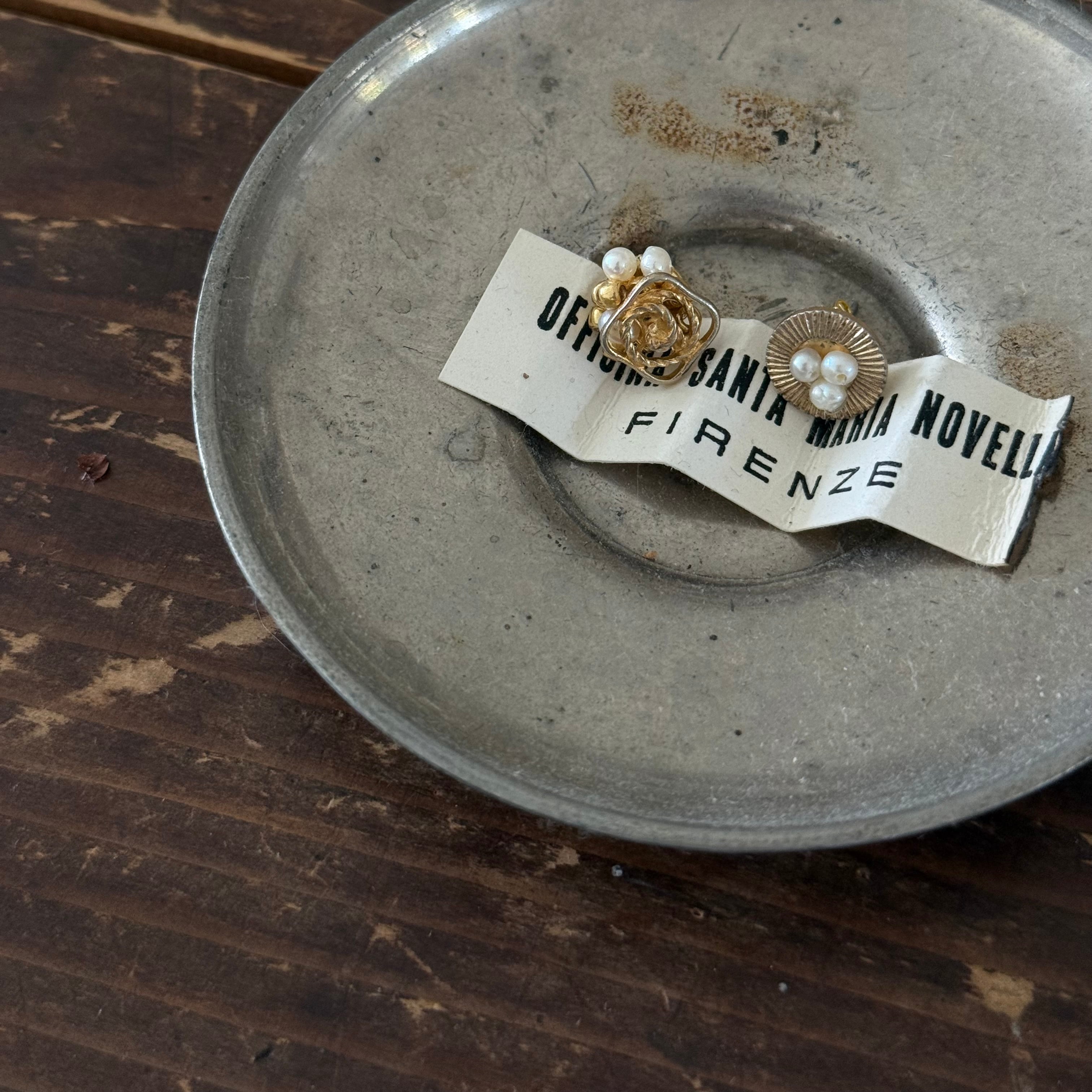 ビンテージボタンとパール、ビーズを組み合わせた魅力的なピアスです。