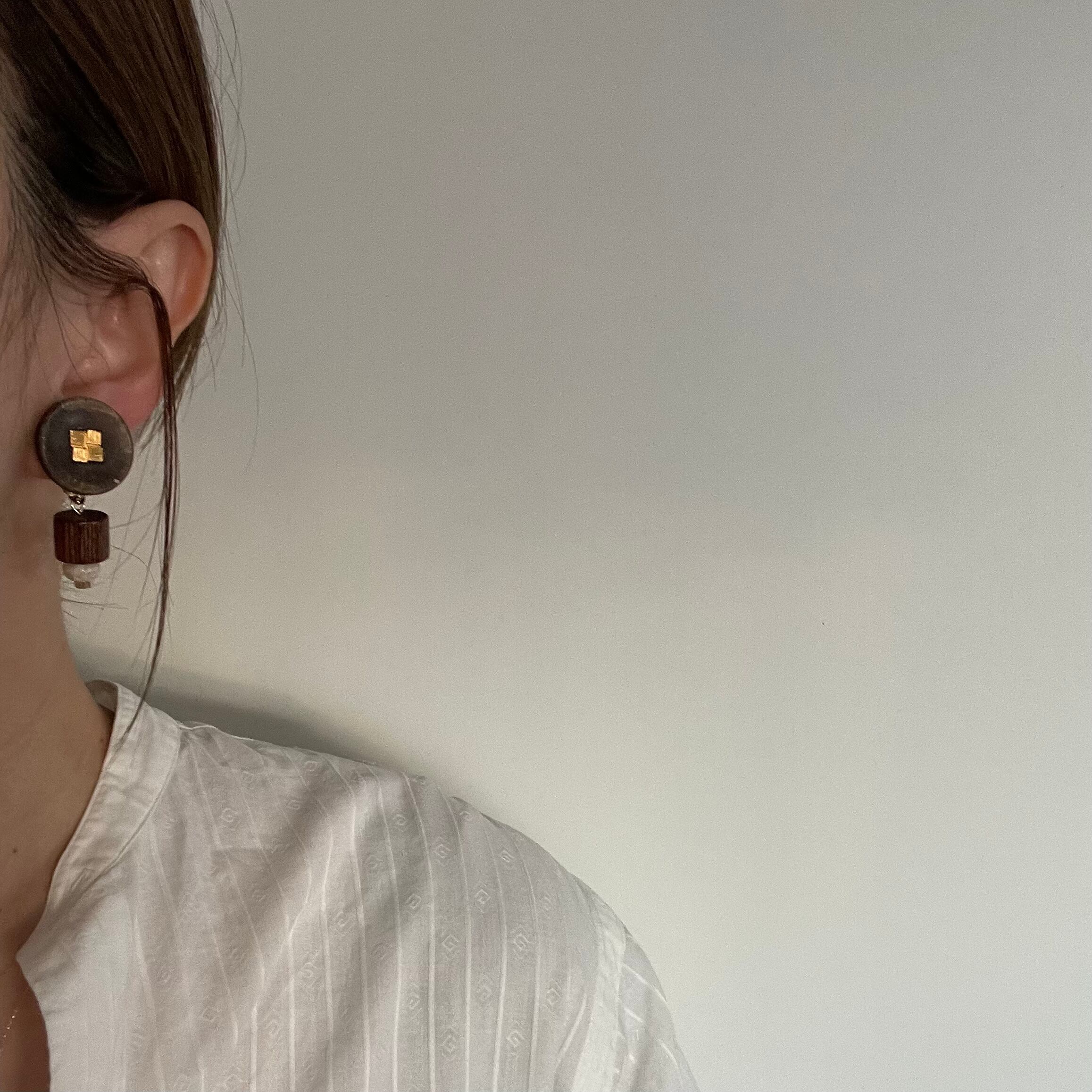 古き良き時代の魅力を感じさせる、ヴィンテージボタンを使用したasymmetry buttonイヤリング。