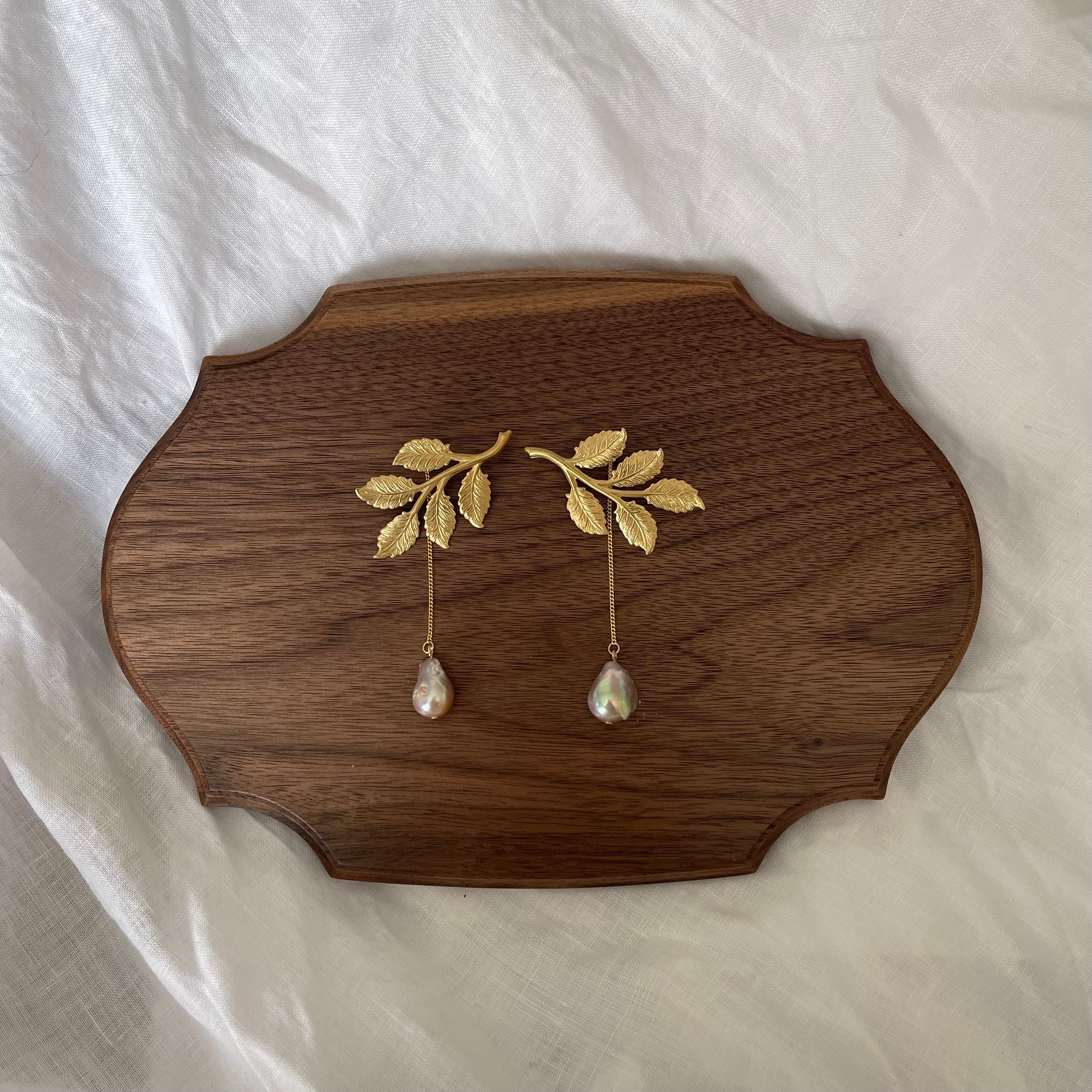 「leaf」は、上品な淡水パールとリーフデザインが絶妙にマッチしたピアスです。