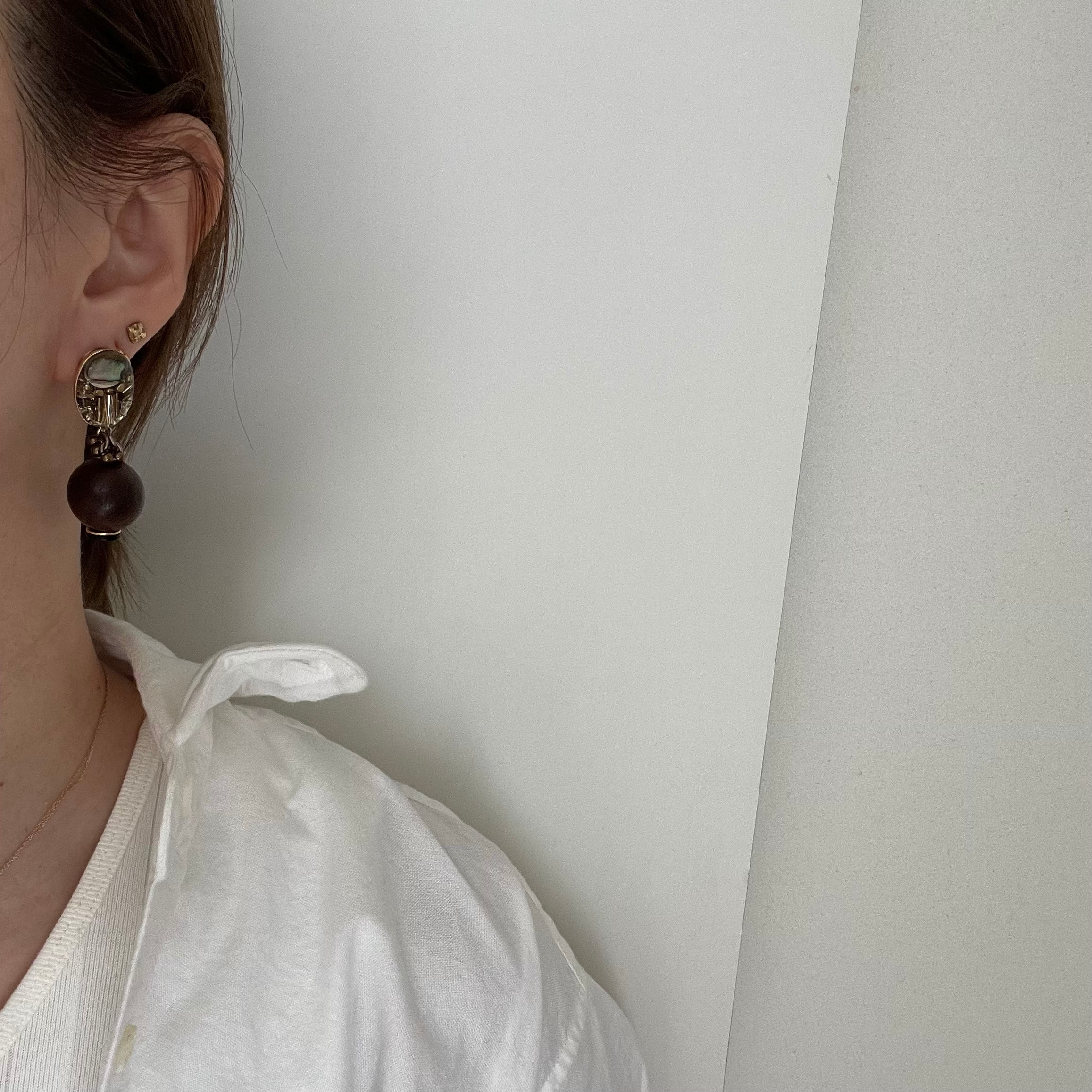 シェルやビーズ、ウッドを組み合わせた自然を感じさせるピアスです。
